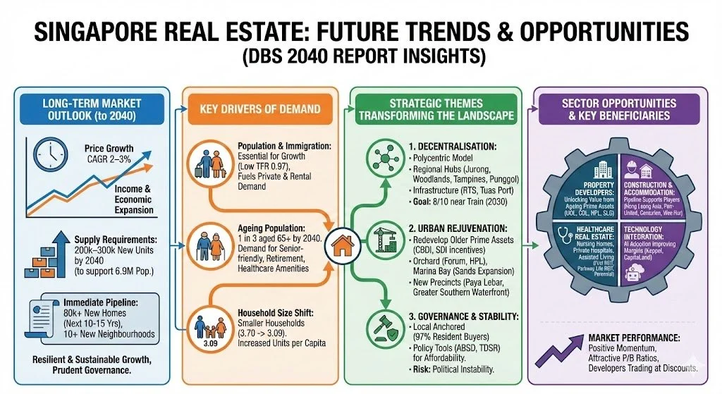 Price growth requires fuel, and that fuel is economic expansion. By 2040, Singapore’s economy is projected to more than double, reaching a staggering USD 1.2 trillion to USD 1.4 trillion.